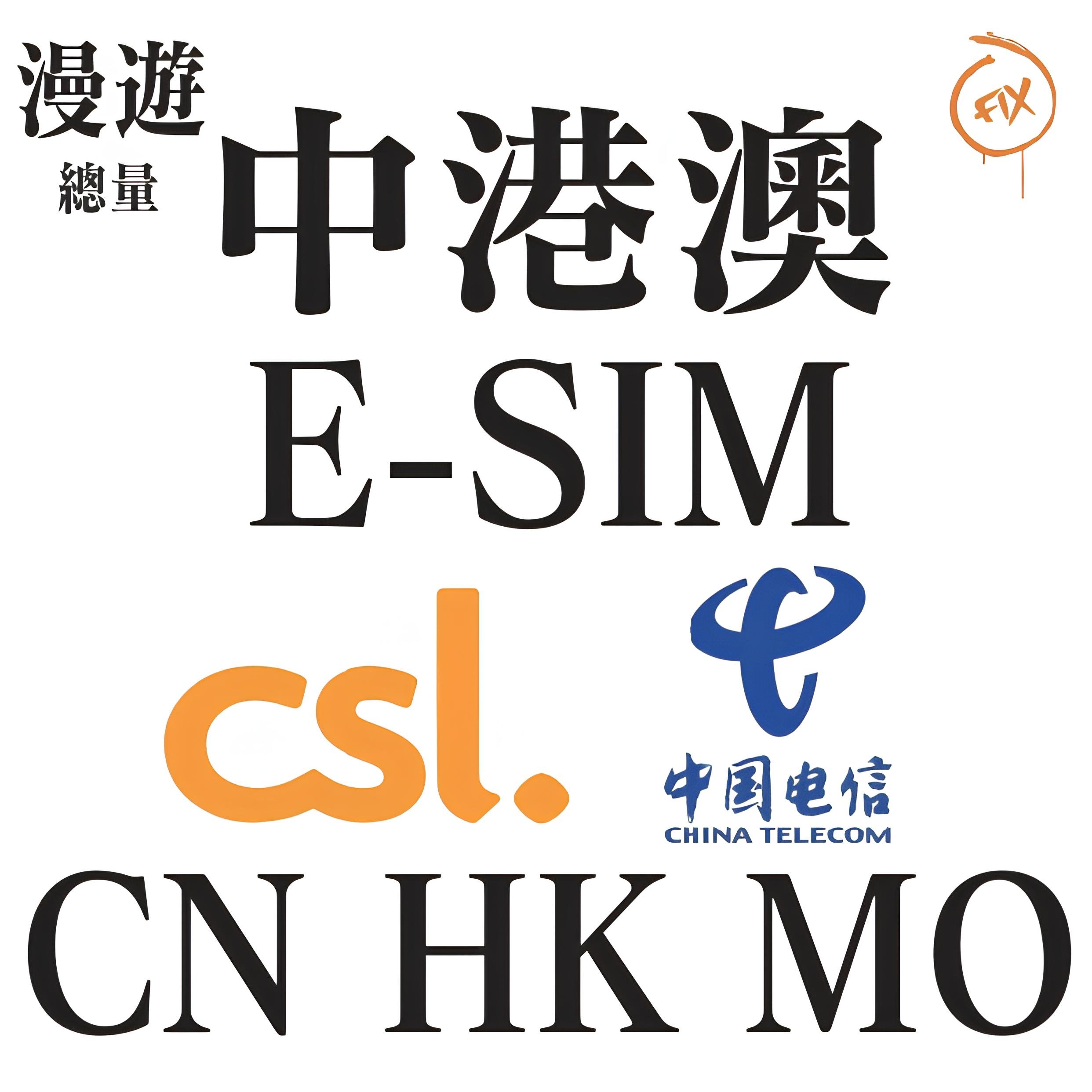 ESIM系列 CSL/中國電信 中港澳 4G/5G 上網卡 (總量)